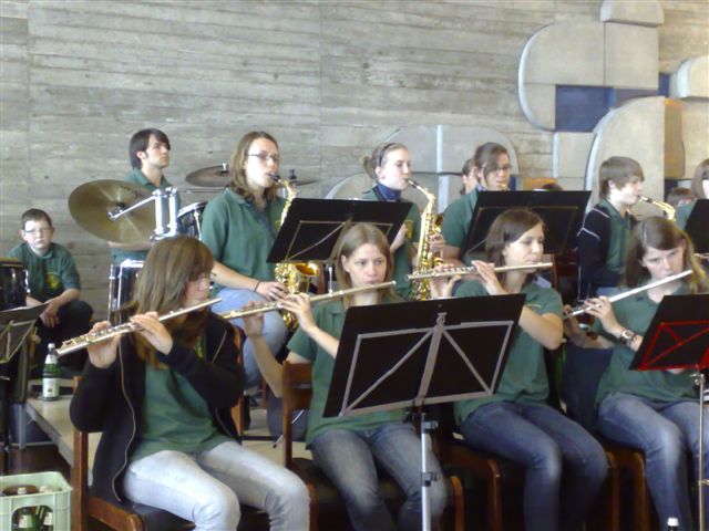 Im Vollbesetzten Kirchensaal begeisterten die jungen Musiker mit anspruchsvollen Musikstücken wie ,,West Side Story" und ,,Pirates of the Caribian" aber auch mit unterhaltsamen Musiktiteln wie ,,Echte Fründe" und ,,Mädchen lach doch Mal “ das Publikum.